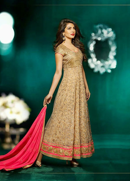 Highlifefashion have bought to you a novel collection of dazzling Anarkali with an appealing Bollywood Actress;”Priyanka Chopra”. This Bollywood artist is famous because of her perfect building personality, appealing gorgeous eyes, with a smooth dark hair with a smooth shiny hair which show the delighters on her look, she gets her overall look because of her beguiling face which has a descent face cut and a beautiful voice. Priyanka Chopra is fulfilled with all the dazzling activeness in her which makes her as superstar in Bollywood and fashion industry. She accomplished with the title Miss World due to her greatest looks. She has performed an outstanding numerous Indian movies. Presently Priyanka Chopra has a great demand in industry her fans are expand universal because of her multiple abilities. This Priyanka Chopra has come with the sizzling Heroine dresses. Have a look to our latest collection on our website.