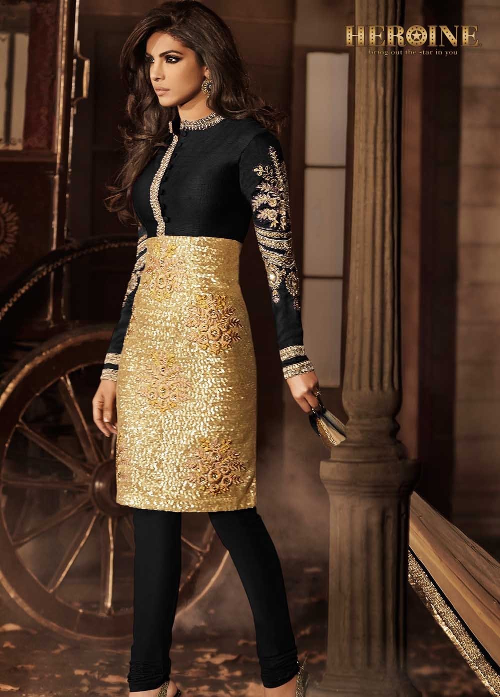 Black and Golden Priyanka Chopra Bhaglpuri Anarkali :