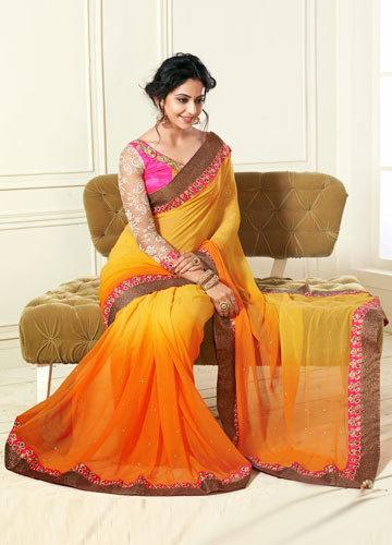 Here we present to you a gathering of Bollywood Replica Sarees worn by bollywood divas at different occasions.. It is a georgette saree weaved with pink, blue and gold fringe. The saree is fit for all nighttime parties as georgette is a light weight fabric and you can convey it effectively. The most spectacular allotment of this saree is its fringe having excellent patch-work. The following saree in the rundown is a lovely blue chiffon saree worn by Evelyn Sharma. It is the sort of saree which you can wear on any event and you will never think twice about it.