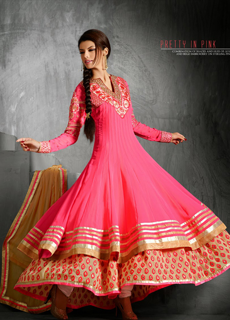 Net Anarkali suits with thick umbrella are the finest conclusion for young ladies who need a brilliant look in customary outfits. This sort of fabric is lightweight and is wonderful when joined with crepe, velvet, georgette, brocade and numerous other articles of clothing materials. For events like wedding gatherings, shine net with substantial work matched with a straightforward dupatta, looks fantastic when worn in a creased manner. The net material is delicate and good for making Kundan work, zari fringe, Resham work, patch work outskirt, Stone work, bead work, zardosi, weaving and numerous different sorts of craftsmanship that are in gigantic interest amid the wedding season.