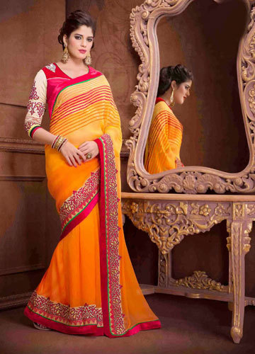 Here we present to you an accumulation of Bollywood imitation Sarees worn by bollywood divas at different occasions. This yellow saree worn by Vidya Balan is outlined by star Indian Fashion. It is a georgette saree weaved with pink, blue and gold outskirt. The saree is fit for all nighttime parties as georgette is a light weight fabric and you can convey it effortlessly. The most charming bit of this saree is its outskirt having excellent patch-work. The following saree in the rundown is a delightful blue chiffon saree worn by Shilpa Shetty on her first Karva Chauth. It is the sort of saree which you can wear on any event and you will never think twice about it. The saree can be matched with a dhupian slipover. This saree is sure to give you an astonishing look. Madhuri Dixit wore a net and brocade saree with succession red fringe. She is one bollywood on-screen character in saree, who can make heads turn even at this age. A red banaras silk outfit runs extremely well with this saree. In any case look at this definite outfit outline picking guide too