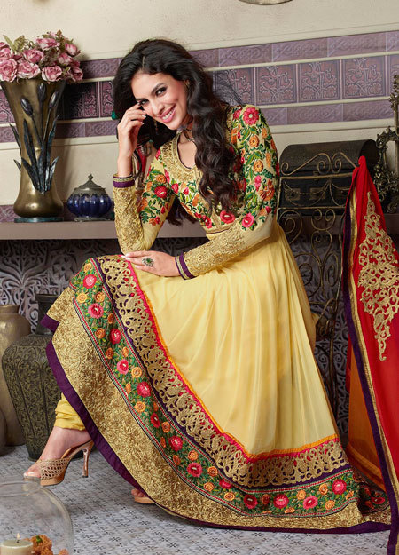 India is a traditional country and expected to fo0llow it cultural from their attire. Anarkali is designed by the artists in the diverse style merging it by looking different custom and religion this Anarkali totally have traditional look with the essence of the modern trend in fashion. These dresses are designed as per the current trend of fashion in the market. This dress are designed by using better quality of fabric such as cotton, velvet, organza, silk, georgette, net, and crepe. However the designs of the dress are unique as some have different weaving pattern, color, style and distinctive embroidery design. This Anarkali get it complete look because of the various material festooned in it such as zari work, aari, embroidery work, resham work, sequins work, pearls work, net work on the sleeves, silky gold and silver thread work in today fashion silver thread are also in use. Beautiful fabric garments are designed in the various patterns some of the Anarkali have also come in the multicolor pattern which has a very combination of color on flares of panels. These dresses have a several option to be desire in various occasion and festival. You may get this Anarkali online just choose your desire attire. Go in for lovely pastel shades like pink Anarkali suits or other such summery colors.