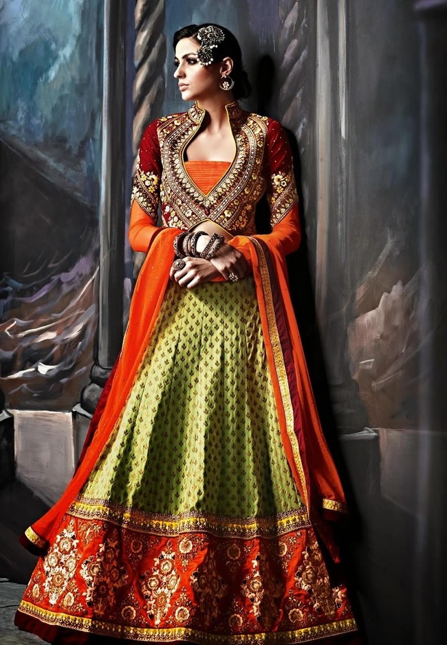 When it come to the shopping of an elegant Lehenga Choli women are excited by seeing such a large variety but it became a bit difficult to choose a right color for a right bridal. One must also look a better pattern and style while choosing designer Lehenga. Color is the most important factor while affording lehenga choli chooses a lehenga which suits your skin tone. Bridal in India mostly prefers a red color lehenga for their marriage ceremony which is a traditional color. The red color worn by the bridal synonyms its prosperity and joy the bridal; little year ago use to wear a lehenga in a simple manner and used to prefer a red color only for their wedding but in today’s vogue bridal are looking for an extreme descent color. Women are experimenting their choice with diverse color such as burgundy, rani pink, white, cream, green, multicolor lehenga etc. are prefer by women which are separately from great colors, another growing trend for the lehenga is heavy embroidery and net work .
